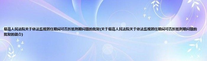 大家好,最高人民法院关于依法监视居住期间可否折抵刑期问题的批复,关于最高人民法院关于依法监视居住期间可否折抵刑期问题的批复的简介很多人还不知道,现在让我们一起来看看吧!