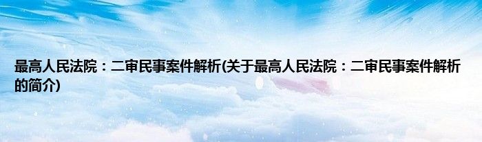 大家好,最高人民法院:二审民事案件解析,关于最高人民法院:二审民事案件解析的简介很多人还不知道,现在让我们一起来看看吧!