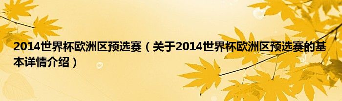 本文关于2014世界杯欧洲区预选赛的基本详情介绍就讲解完毕,希望对大家有所帮助。