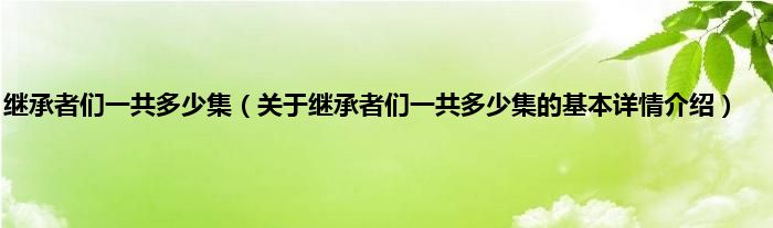本文关于继承者们一共多少集的基本详情介绍就讲解完毕,希望对大家有所帮助。