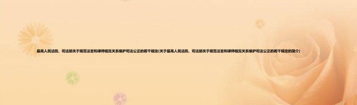 本文关于最高人民法院、司法部关于规范法官和律师相互关系维护司法公正的若干规定的简介就讲解完毕,希望对大家有所帮助。