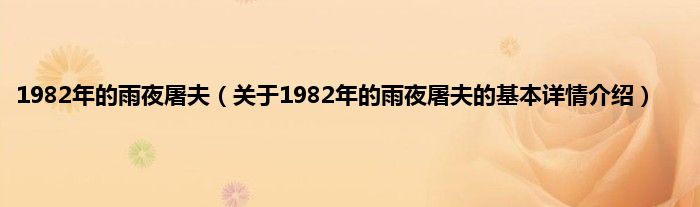 1982年的雨夜屠夫(关于1982年的雨夜屠夫的基本详情介绍)