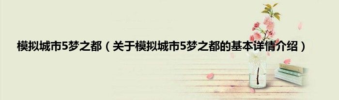本文关于模拟城市5梦之都的基本详情介绍就讲解完毕,希望对大家有所帮助。