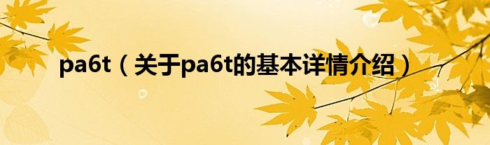 本文关于pa6t的基本详情介绍就讲解完毕,希望对大家有所帮助。