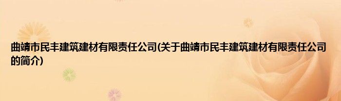 本文关于曲靖市民丰建筑建材有限责任公司的简介就讲解完毕,希望对大家有所帮助。