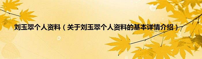 本文关于刘玉翠个人资料的基本详情介绍就讲解完毕,希望对大家有所帮助。