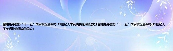 本文关于普通高等教育“十一五”国家级规划教材·21世纪大学英语快速阅读的简介就讲解完毕,希望对大家有所帮助。