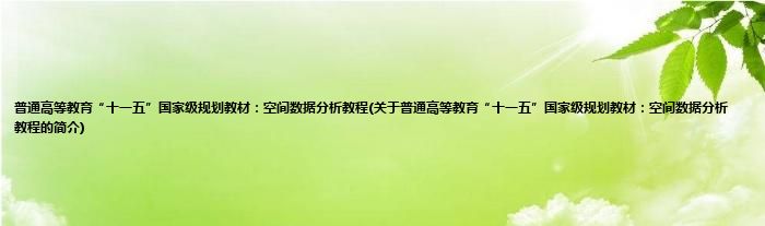 本文关于普通高等教育“十一五”国家级规划教材:空间数据分析教程的简介就讲解完毕,希望对大家有所帮助。