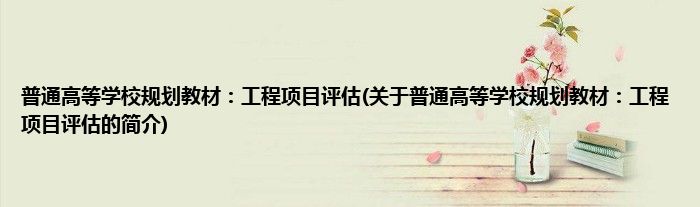 大家好,普通高等学校规划教材:工程项目评估,关于普通高等学校规划教材:工程项目评估的简介很多人还不知道,现在让我们一起来看看吧!