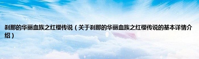 本文关于刹那的华丽血族之红樱传说的基本详情介绍就讲解完毕,希望对大家有所帮助。