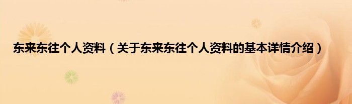 本文关于东来东往个人资料的基本详情介绍就讲解完毕,希望对大家有所帮助。