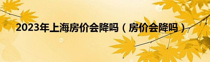 以上就是【2023年上海房价会降吗,房价会降吗】相关内容。