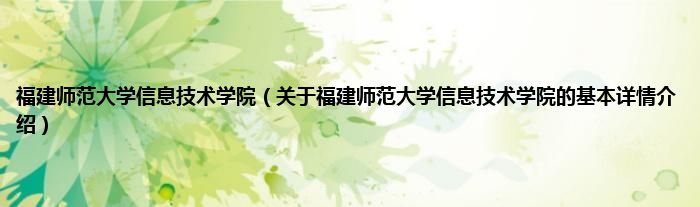 本文关于福建师范大学信息技术学院的基本详情介绍就讲解完毕,希望对大家有所帮助。
