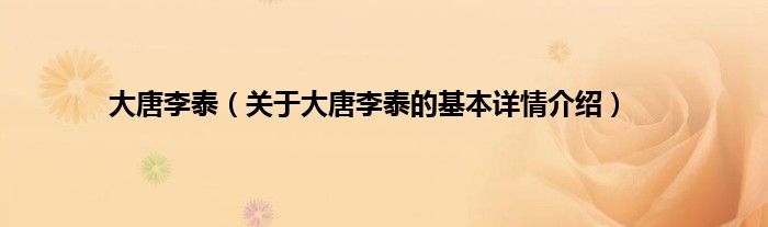 本文关于大唐李泰的基本详情介绍就讲解完毕,希望对大家有所帮助。