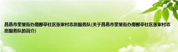 1、 昌邑市奎聚街办南鄑亭社区张家村志愿服务队是由昌邑市文明办领导下的志愿团体。