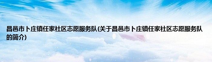1、 昌邑市卜庄镇任家社区志愿服务队是由昌邑市文明办领导下的志愿团体。