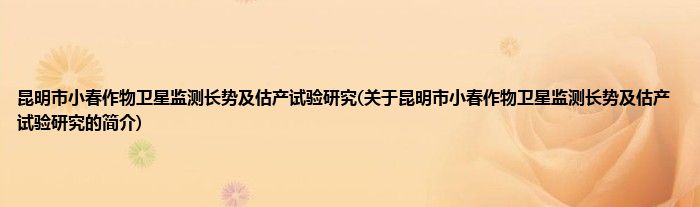 昆明市小春作物卫星监测长势及估产试验研究(关于昆明市小春作物卫星监测长势及估产试验研究的简介)