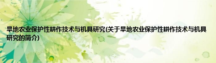 本文关于旱地农业保护性耕作技术与机具研究的简介就讲解完毕,希望对大家有所帮助。