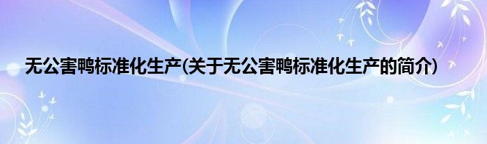 本文关于无公害鸭标准化生产的简介就讲解完毕,希望对大家有所帮助。