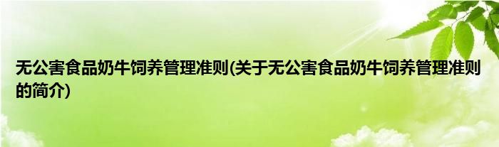 本文关于无公害食品奶牛饲养管理准则的简介就讲解完毕,希望对大家有所帮助。