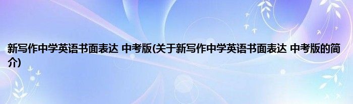 本文关于新写作中学英语书面表达 中考版的简介就讲解完毕,希望对大家有所帮助。