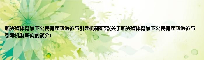 本文关于新兴媒体背景下公民有序政治参与引导机制研究的简介就讲解完毕,希望对大家有所帮助。
