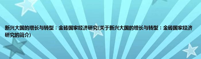 大家好,新兴大国的增长与转型:金砖国家经济研究,关于新兴大国的增长与转型:金砖国家经济研究的简介很多人还不知道,现在让我们一起来看看吧!