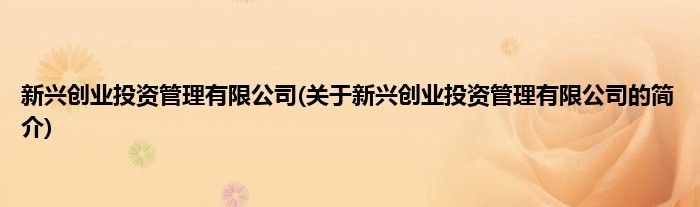 本文关于新兴创业投资管理有限公司的简介就讲解完毕,希望对大家有所帮助。