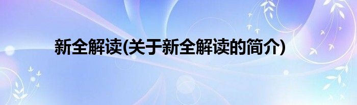 本文关于新全解读的简介就讲解完毕,希望对大家有所帮助。