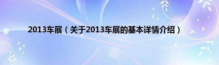本文关于2013车展的基本详情介绍就讲解完毕,希望对大家有所帮助。