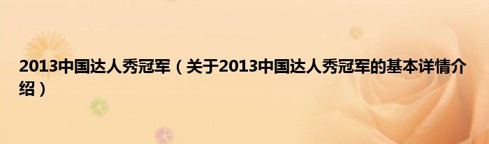 本文关于2013中国达人秀冠军的基本详情介绍就讲解完毕,希望对大家有所帮助。