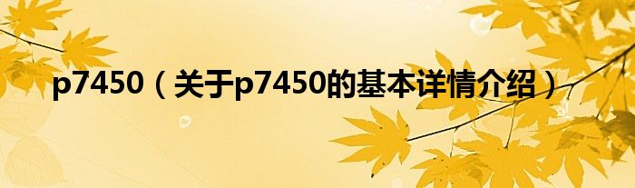 本文关于p7450的基本详情介绍就讲解完毕,希望对大家有所帮助。