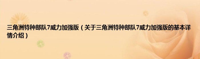 本文关于三角洲特种部队7威力加强版的基本详情介绍就讲解完毕,希望对大家有所帮助。