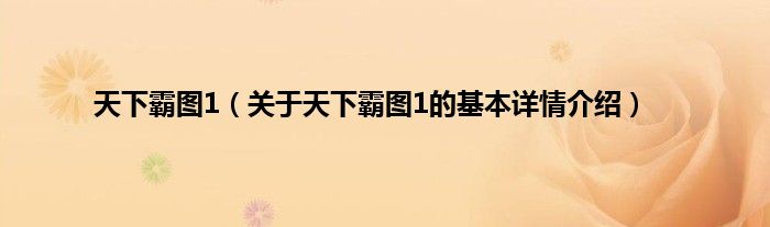 本文关于天下霸图1的基本详情介绍就讲解完毕,希望对大家有所帮助。