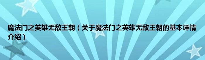 本文关于魔法门之英雄无敌王朝的基本详情介绍就讲解完毕,希望对大家有所帮助。