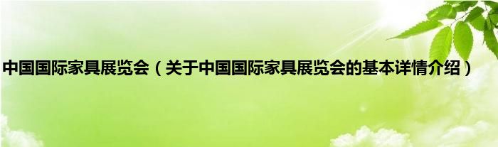 本文关于中国国际家具展览会的基本详情介绍就讲解完毕,希望对大家有所帮助。