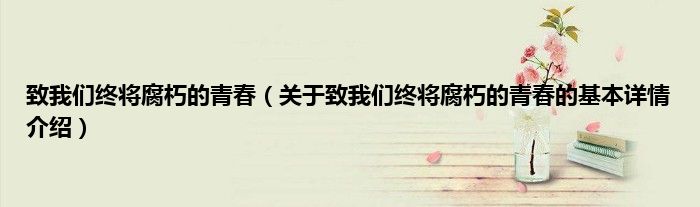 本文关于致我们终将腐朽的青春的基本详情介绍就讲解完毕,希望对大家有所帮助。