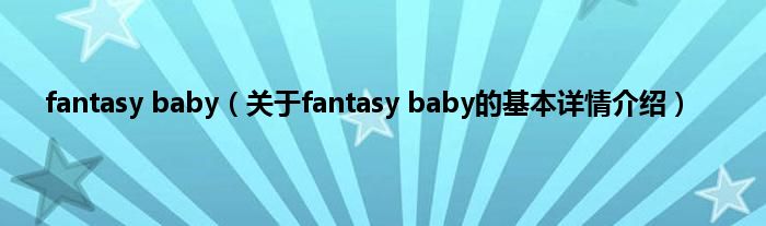 本文关于fantasy baby的基本详情介绍就讲解完毕,希望对大家有所帮助。