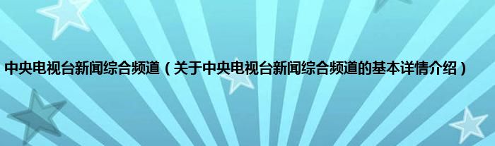 本文关于中央电视台新闻综合频道的基本详情介绍就讲解完毕,希望对大家有所帮助。