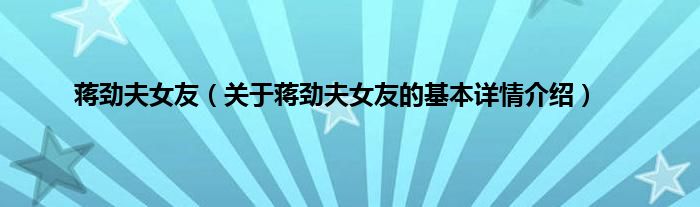 大家好我是小蝌蚪,蒋劲夫女友,关于蒋劲夫女友的基本详情介绍很多人还不知道,那么现在让我们一起来看看吧!