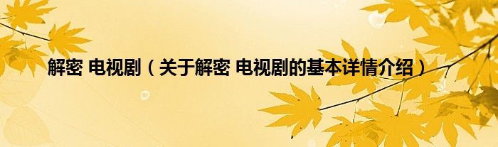 本文关于解密 电视剧的基本详情介绍就讲解完毕,希望对大家有所帮助。