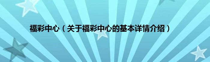 本文关于福彩中心的基本详情介绍就讲解完毕,希望对大家有所帮助。