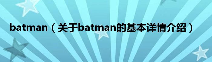 大家好我是小蝌蚪,batman,关于batman的基本详情介绍很多人还不知道,那么现在让我们一起来看看吧!