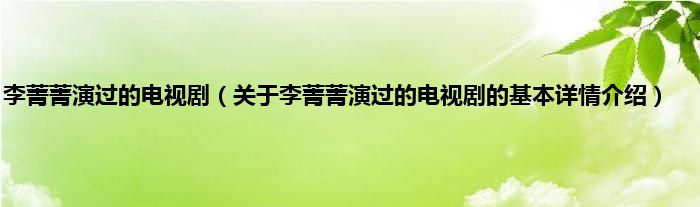 本文关于李菁菁演过的电视剧的基本详情介绍就讲解完毕,希望对大家有所帮助。