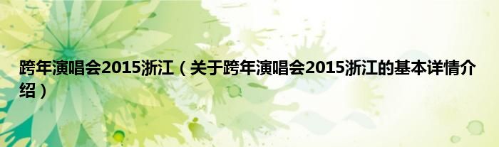 本文关于跨年演唱会2015浙江的基本详情介绍就讲解完毕,希望对大家有所帮助。