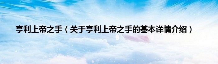 大家好我是小蝌蚪,亨利上帝之手,关于亨利上帝之手的基本详情介绍很多人还不知道,那么现在让我们一起来看看吧!