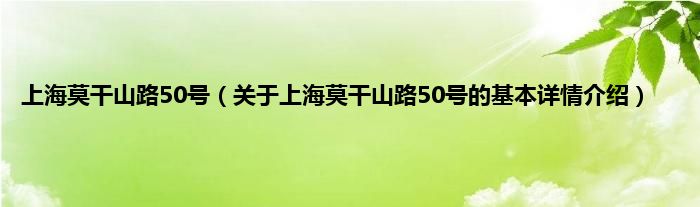 本文关于上海莫干山路50号的基本详情介绍就讲解完毕,希望对大家有所帮助。
