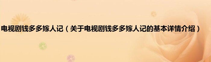 本文关于电视剧钱多多嫁人记的基本详情介绍就讲解完毕,希望对大家有所帮助。