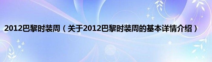 本文关于2012巴黎时装周的基本详情介绍就讲解完毕,希望对大家有所帮助。