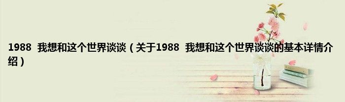 本文关于1988 我想和这个世界谈谈的基本详情介绍就讲解完毕,希望对大家有所帮助。